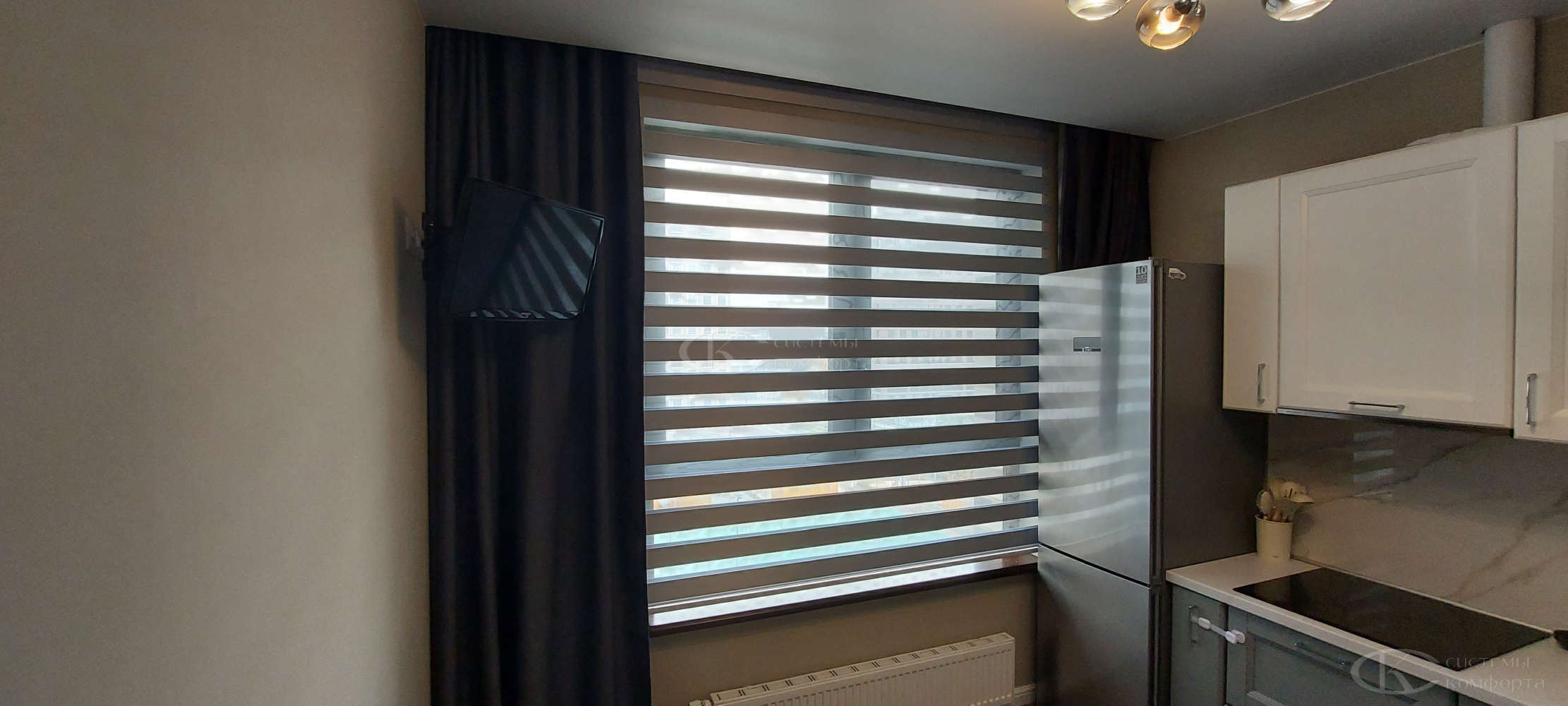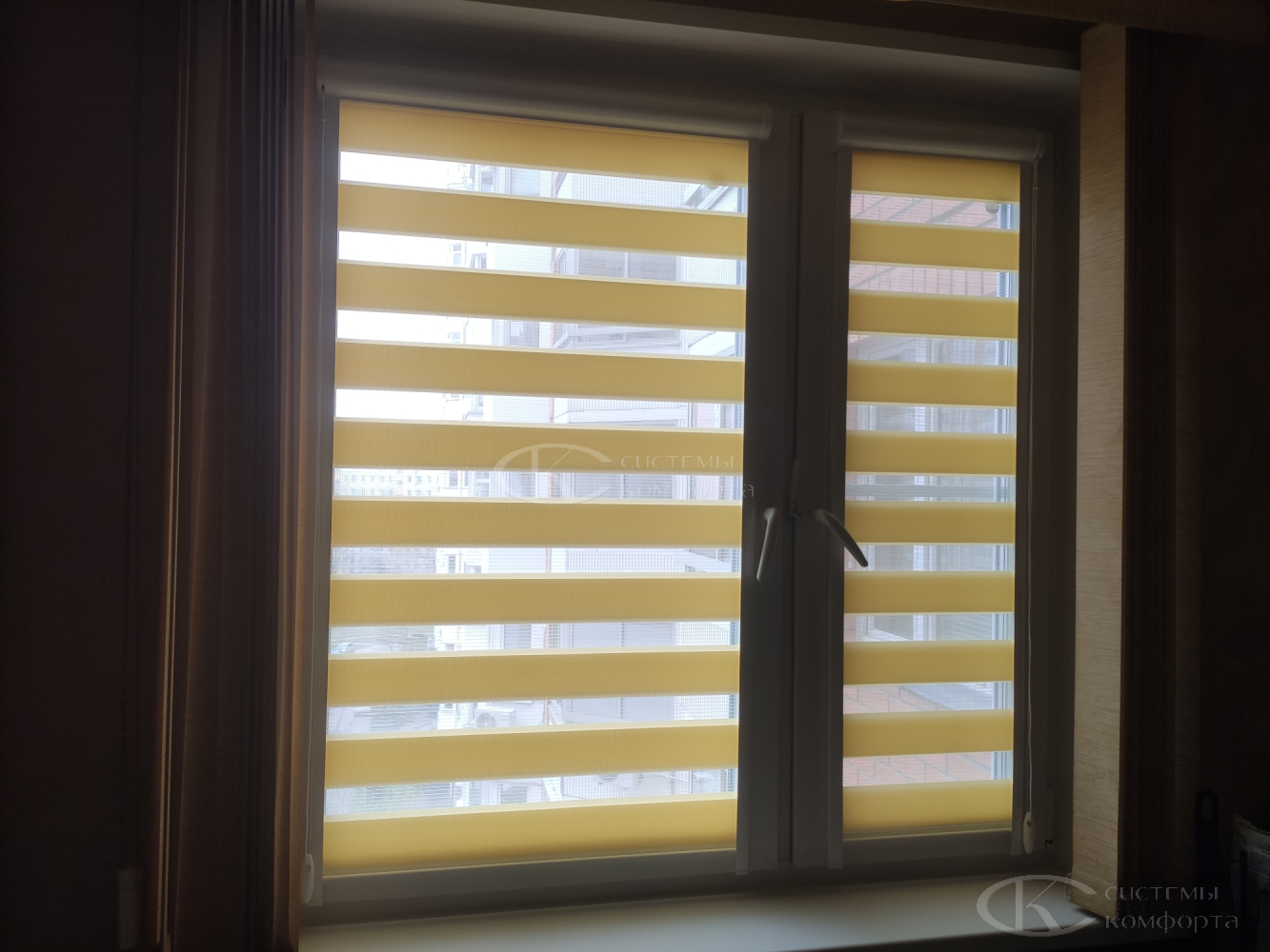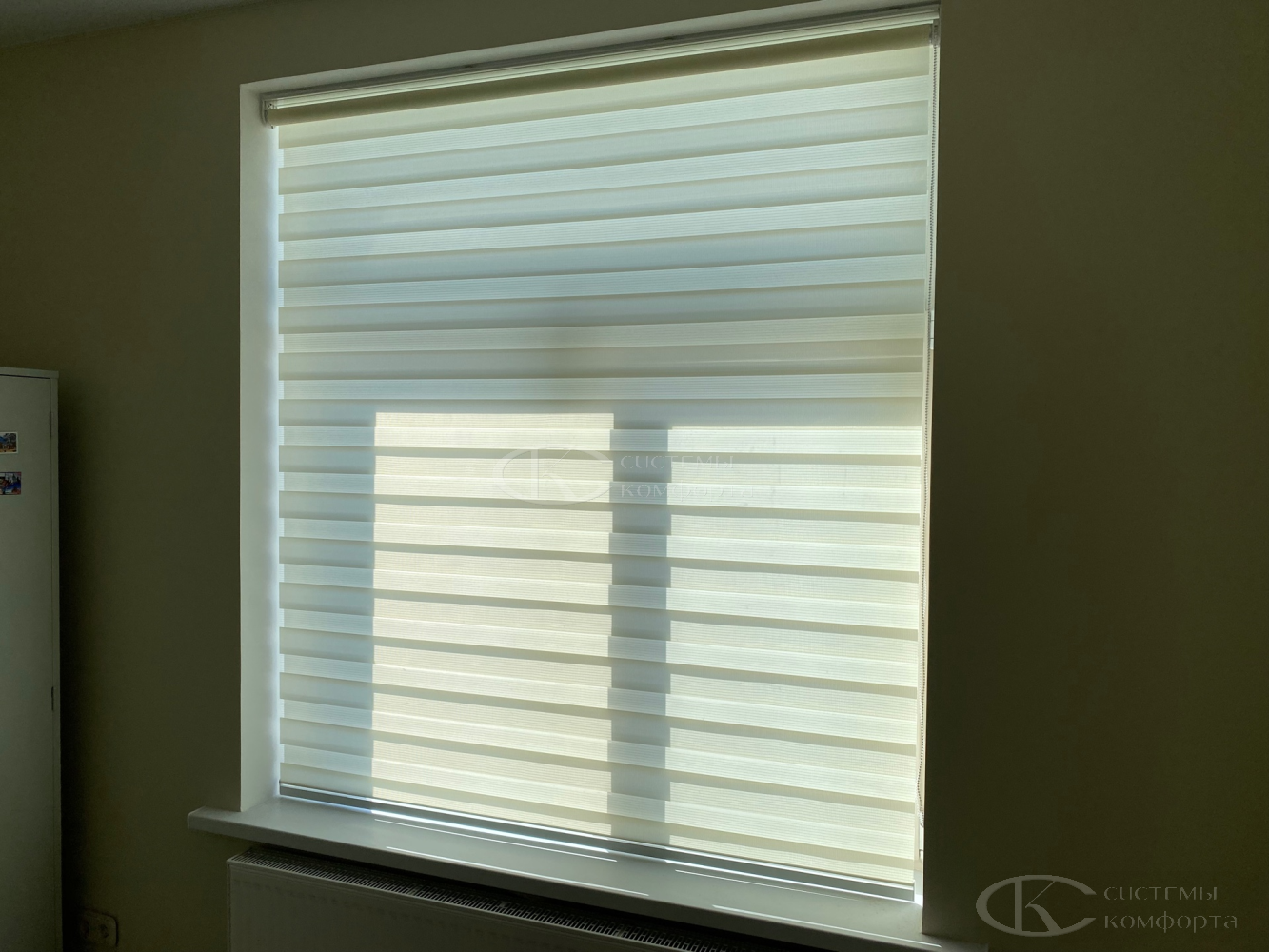 Классические рулонные шторы изготавливаются из огромного разнообразия тканей – от воздушных и полупрозрачных до абсолютно плотных, не пропускающих свет («блэкаут»), что позволяет подобрать решение для любой задачи и комнаты. Для тех, кто ценит гибкий сценарий освещения, идеальным выбором станут шторы «День-ночь», также известные как «Зебра». Их уникальная конструкция состоит из чередующихся прозрачных и плотных полос; регулируя их положение относительно друг друга, вы плавно управляете потоком света, создавая любой уровень затемнения между «светло» и «темно». Это оптимальный вариант для спальни и детской, где важно и мягкое утреннее пробуждение, и полная темнота для глубокого сна.
