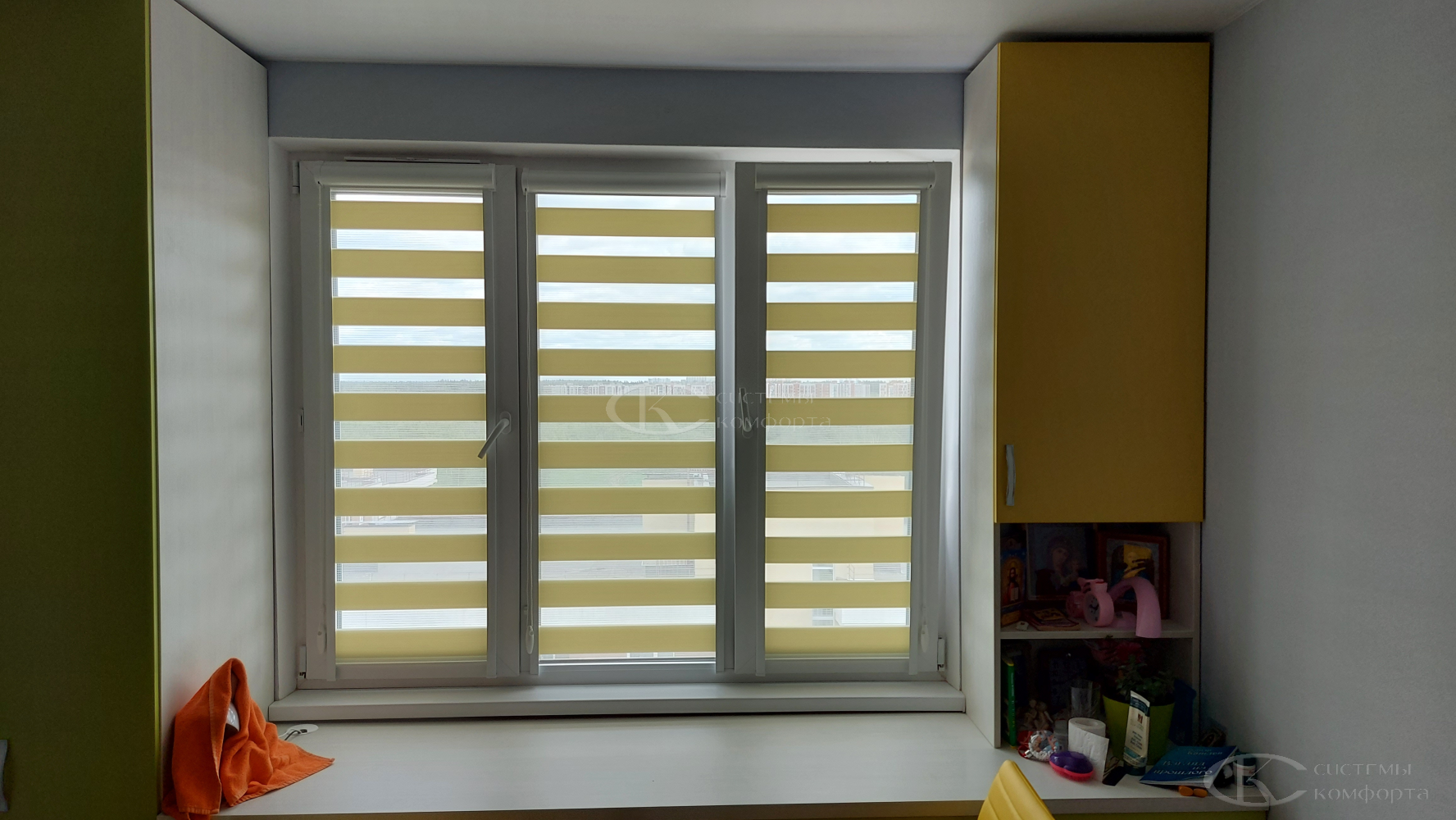 - Спальня/детская: контроль света и полное затемнение. Рулонные шторы «День-ночь», плотные тканевые римские или вертикальные модели, жалюзи с системой блэкаут.