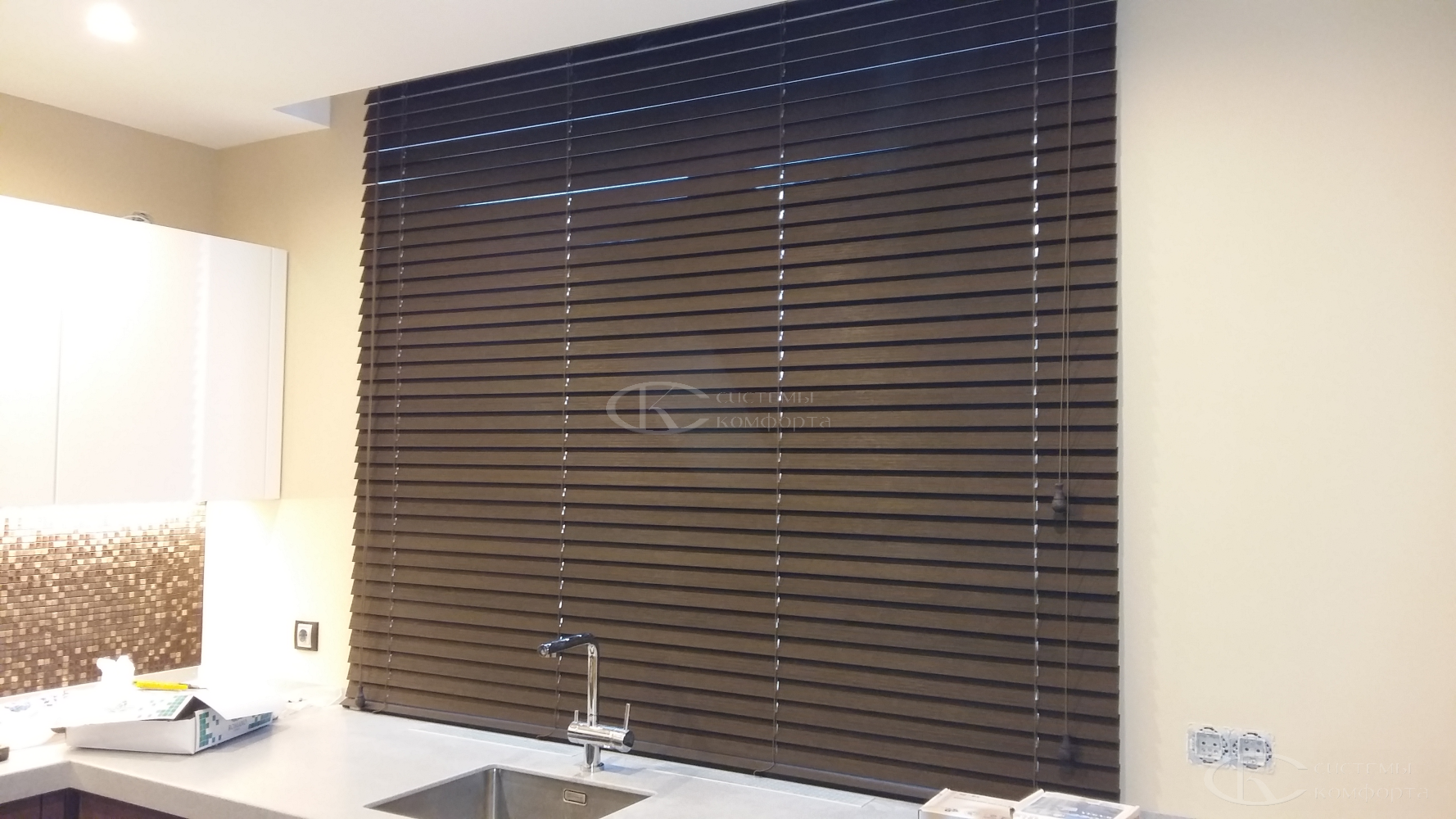- Деревянные жалюзи. Элитный сегмент с неповторимой аурой экологичности. Изготавливаются из легких пород. Создают в комнате уют, тепло, снижают уровень отраженного шума. Требуют аккуратного ухода и защиты от высокой влажности. Идеальный выбор для гостиной или спальни в эко- или классическом стиле.
