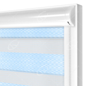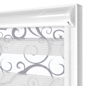 Кассетные рулонные шторы День-Ночь Uni-2 не просто защищают помещение от света и уличных взглядов, но еще и украшают помещение. Конструктивная особенность в том, что изделие состоит из двух слоев ткани. Прозрачные и непрозрачные участки материала чередуются словно рисунок на теле зебры. Благодаря тому, что ткань двигается в «П»-образных направляющих, она не выпадает, если окно находится в режиме проветривания.