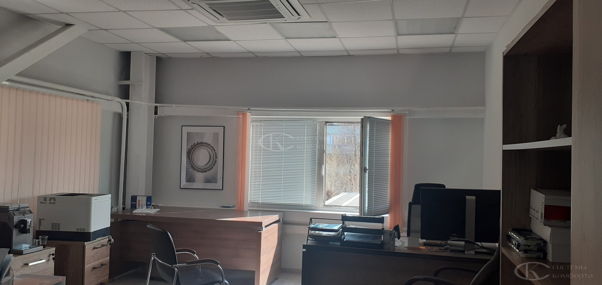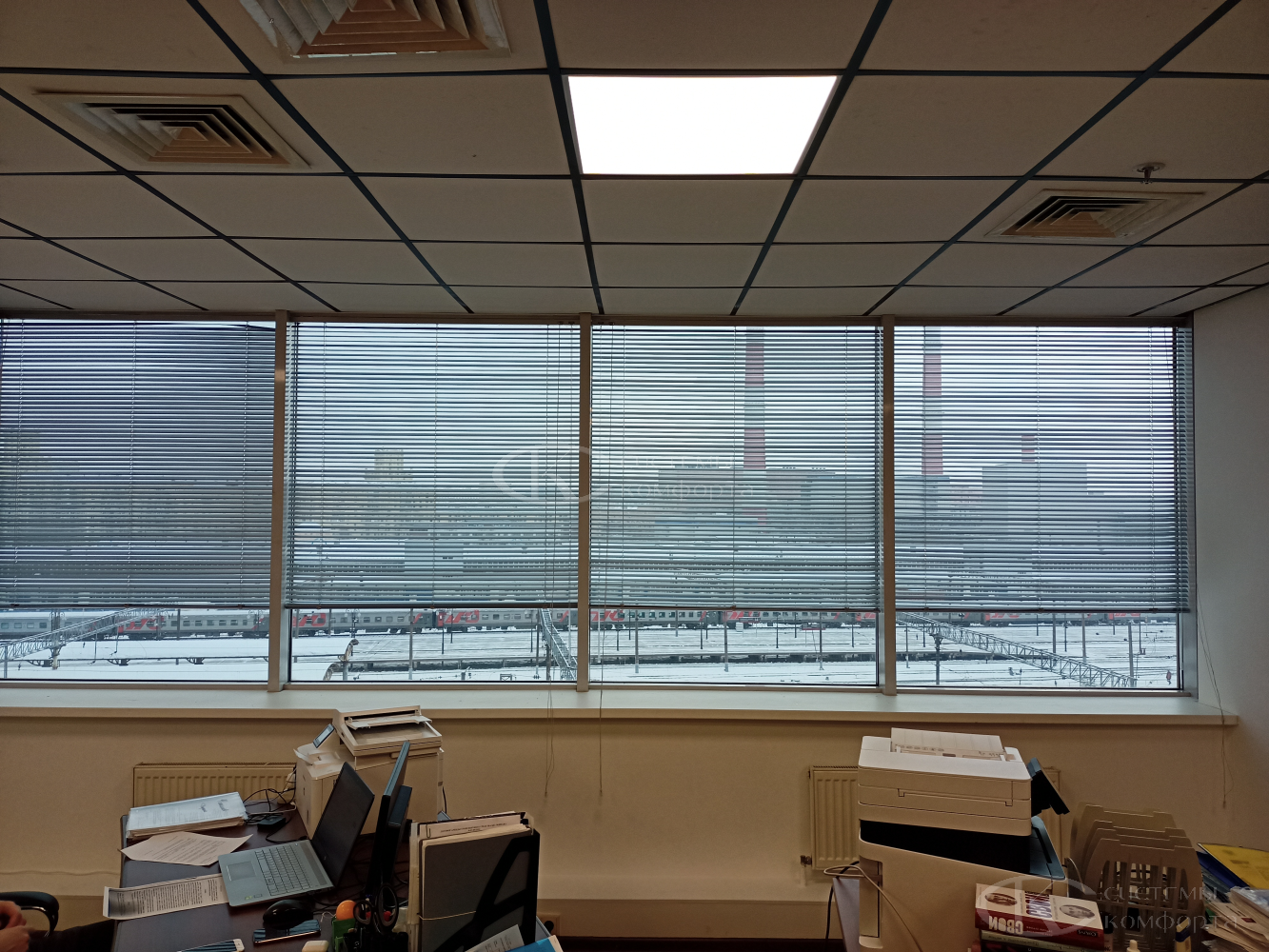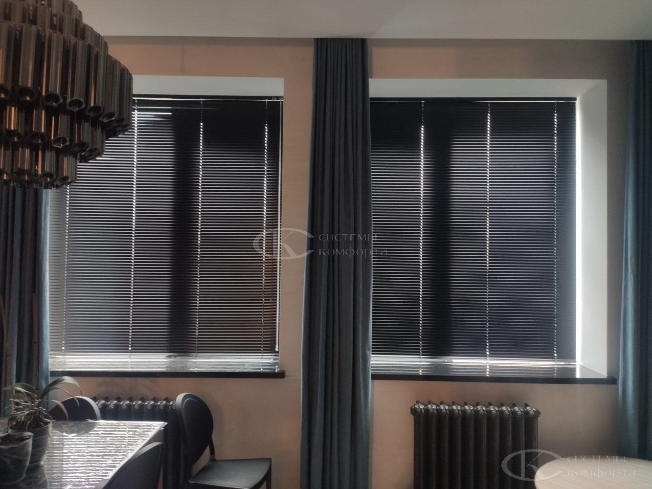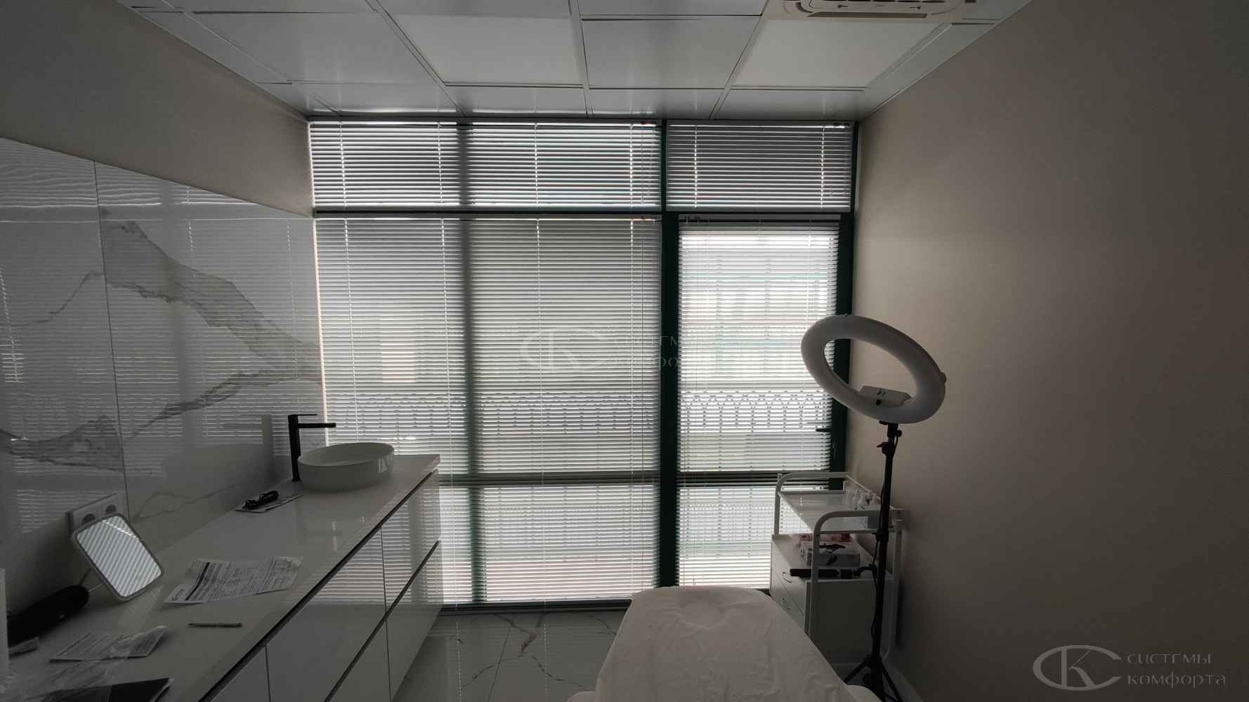 Компания «Системы комфорта» предлагает горизонтальные жалюзи с цветными алюминиевыми ламелями и перфорацией (опционально). Краска, которая используется в производстве, сертифицирована (экология), не выгорает на солнце и не истирается весь срок службы изделия.