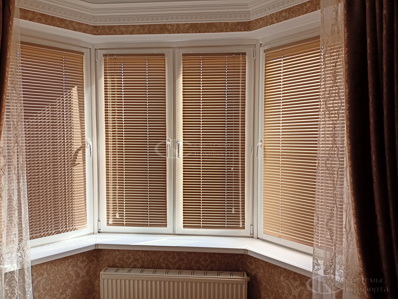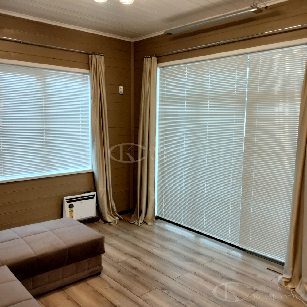 На маркетплейсах продают изделия с фиксированными размерами по ширине и высоте, с ограниченным выбором цветов и фактур, а также – не продаются практичные перфорированные ламели и с шириной ленты 50 мм, которые намного дешевле деревянных, но при этом очень солидно смотрятся в доме или в офисе.
