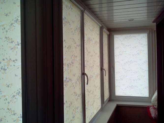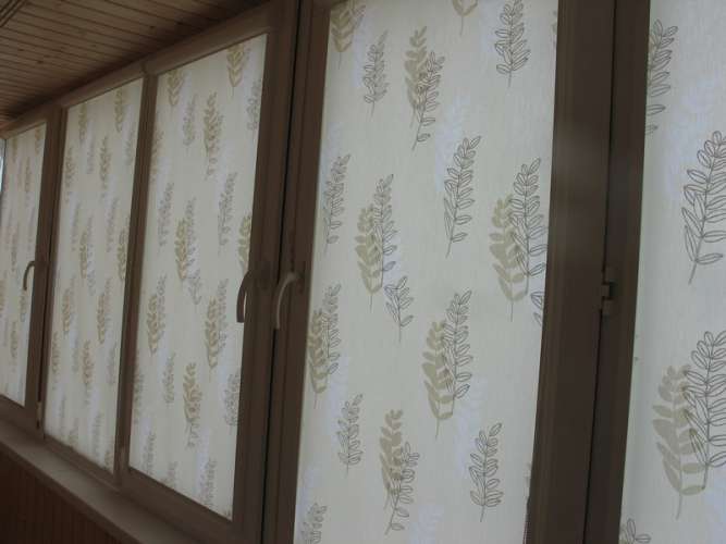 Рулонные жалюзи на балкон устанавливают на распашные или откидные рамы. Не подходят для раздвижных створок. Для изготовления используются ткани различных цветов и фактур. Рулонные шторы бывают свободновисящими или кассетными. Вторые удобны тем, что полотно не болтается на ветру, а направляющие из алюминия защищают полотно от пыли и копоти, летящих с улицы.