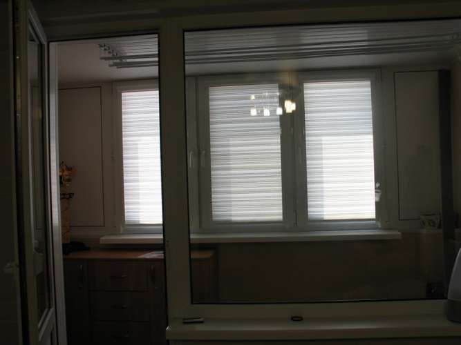 Достаточно дорогой вариант, сочетающий достоинства обычных пластиковых жалюзи и штор. Полотно собрано в чёткие складки, в опущенном виде выглядит как штора, а в собранном занимает минимум места. Особенно эффектно плиссированные жалюзи смотрятся на лоджиях с большой площадью остекления.