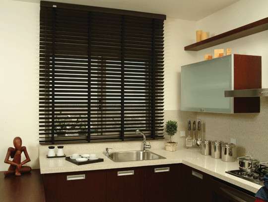 Крепление жалюзи на кухне может осуществляться на стену (основание закрепляют над оконным проемом), раму (с помощью кронштейнов и саморезов) или потолок (для вертикальных моделей).
