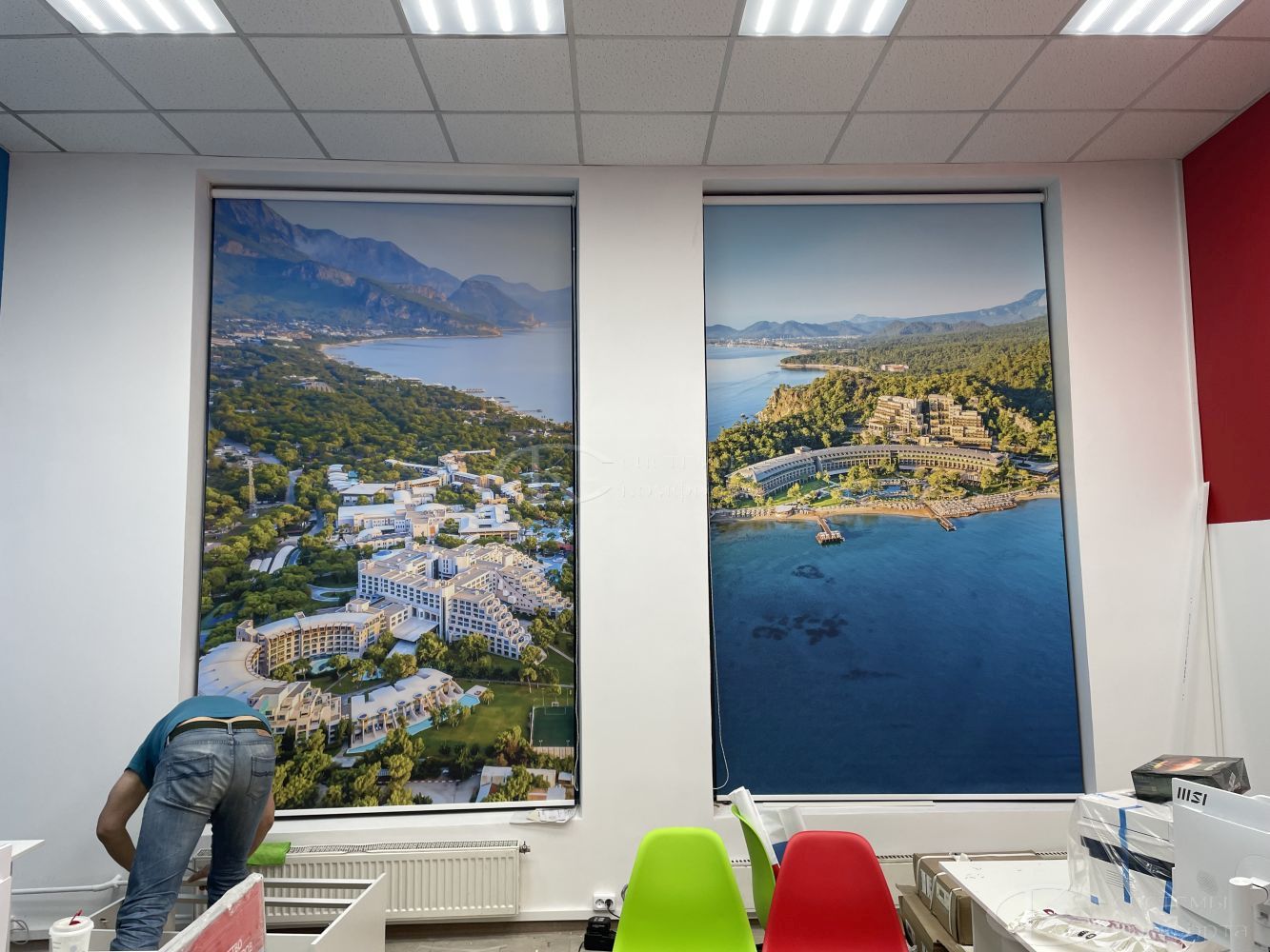 Рулонные шторы с рисунком универсальны. Сложно найти помещение, где они будут выглядеть нелепо и неуместно. На ткань можно нанести практически любое изображение, будь то персонажи из мультипликационного фильма или строгий офисный принт.