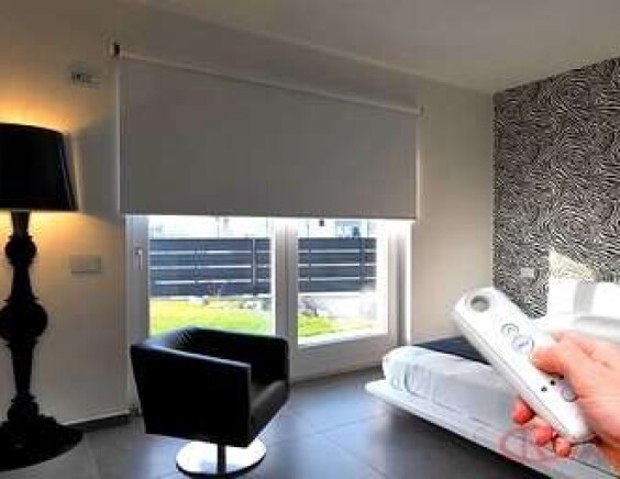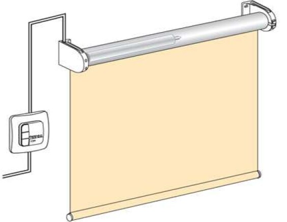 На свободновисящие рулонные жалюзи устанавливают автоматику с напряжением 220 V. Управление выполняется с клавиши или пульта управления (ДУ). Монтаж продумывается на этапе ремонта, так как требуется проведение электропитания. После завершения отделки электропроводка прокладывается наружно.