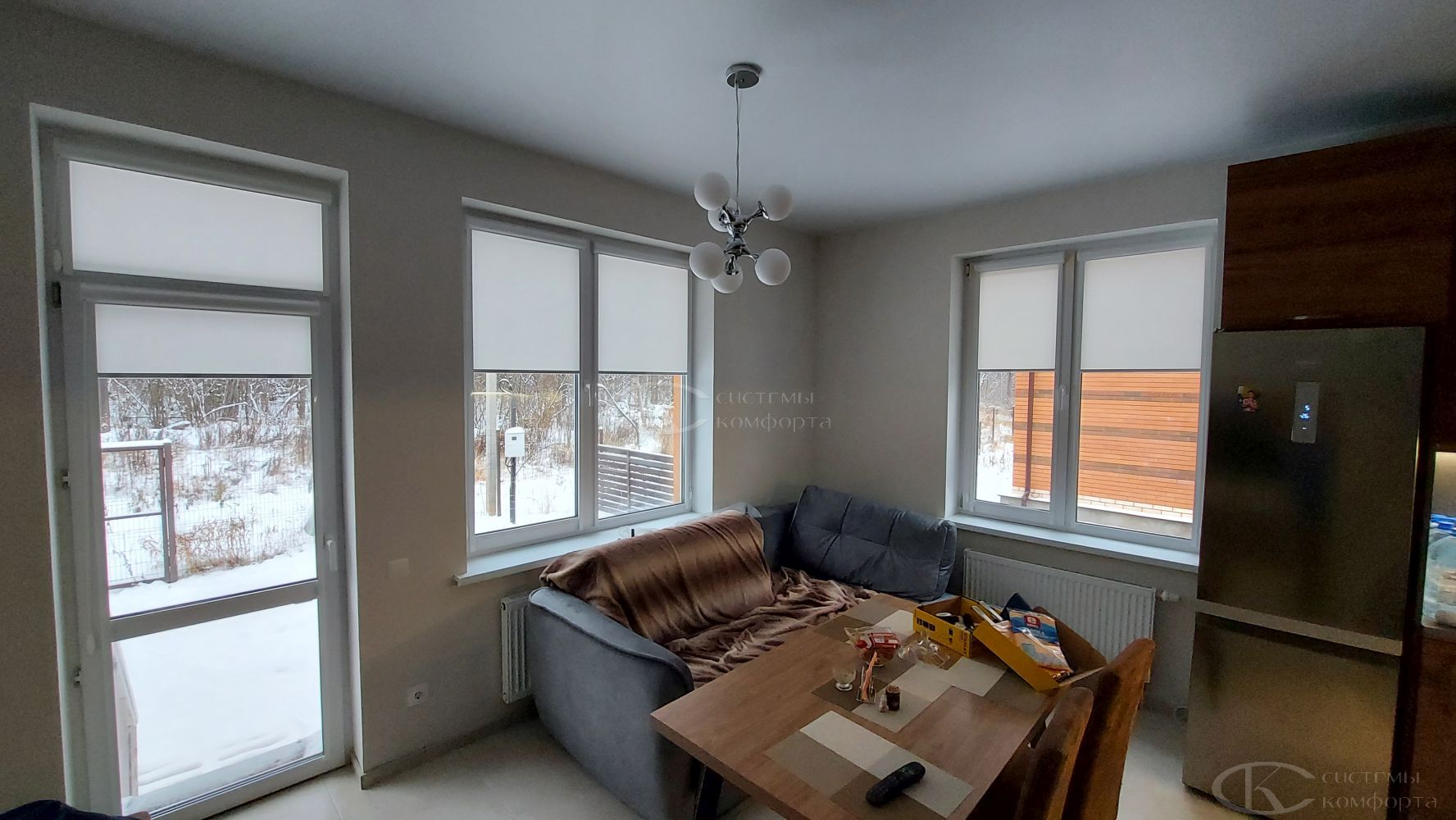 Кассетные рулонные шторы фиксируются на каждую створку оконной конструкции. Среди плюсов таких изделий можно отметить плотное прилегание к стеклу, что стало возможным за счет короба, направляющих и других элементов. Благодаря единой цветовой гамме создается единый образ, который не выбивается из интерьера помещения. Они отлично показывают себя при проветривании, откидывании, открытии створок.